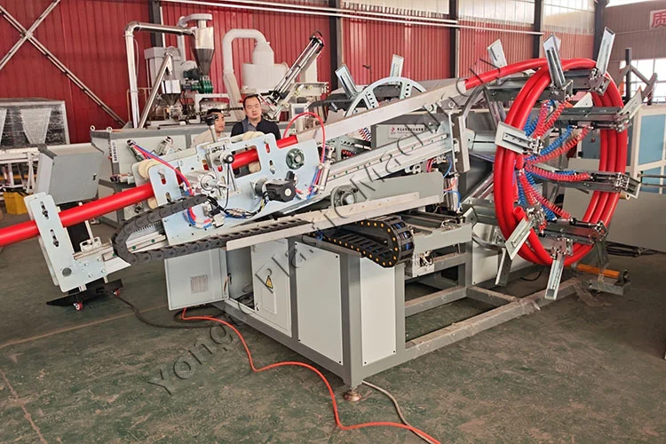 ในปี 2025 เราประสบความสำเร็จในการส่งมอบเครื่องพันท่อ PE อัตโนมัติแบบปรับแต่งได้สองชุดให้กับองค์กรแปรรูปพลาสติกชั้นนำของอาร์เจนตินา ลูกค้าต้องการโซลูชันการม้วนที่มีประสิทธิภาพสูงเพื่อให้เข้ากับไลน์การอัดรีดท่อ PE ความเร็วสูงที่เพิ่งขยายใหม่ คำสั่งซื้อประกอบด้วยสองหน่วยพิเศษ: เครื่องไขลานอัตโนมัติแบบสถานีคู่หนึ่งเครื่องที่ปรับให้เหมาะกับท่อขนาดเส้นผ่านศูนย์กลาง 15-32 มม. และอีกรุ่นความจุสูงอีกเครื่องที่ออกแบบมาสำหรับเส้นผ่านศูนย์กลาง 20-63 มม. เครื่องจักรเหล่านี้ผสานรวมเข้ากับสายการผลิตรีดท่อ PE ความเร็วสูงได้อย่างราบรื่น เพื่อม้วนท่อให้เป็นม้วนสม่ำเสมอโดยอัตโนมัติ เมื่อติดตั้งระบบการนับความยาวอัตโนมัติ เครื่องจะสั่งงานการตัดอัตโนมัติและการถ่ายโอนสถานีเมื่อถึงความยาวเป้าหมาย โดยจะยึดม้วนที่เสร็จแล้วและเปิดใช้งานการแจ้งเตือนสำหรับการบรรจุไปพร้อมๆ กัน ซึ่งเป็นโซลูชันการขึ้นลานอัตโนมัติเต็มรูปแบบ การทดสอบจากโรงงานอย่างเข้มงวดก่อนการจัดส่งทำให้การทำงานถึงสถานที่มีความเสถียรหลังการส่งมอบ