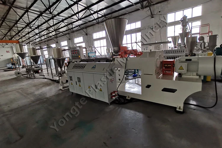 ในปี 2024 เราได้ออกแบบเครื่องอัดเม็ดพีวีซีคอมพาวด์แบบกำหนดเองสำหรับลูกค้าชาวโปแลนด์ ซึ่งออกแบบมาเป็นพิเศษเพื่อผลิตเม็ดมาสเตอร์แบทช์ PVC จาก PVC รีไซเคิลและตัวเติม CaCO₃ ปริมาณสารตัวเติม CaCO₃ สามารถปรับได้อย่างยืดหยุ่นระหว่าง 40% ถึง 80% เพื่อให้สอดคล้องกับข้อกำหนดการผลิตของลูกค้า ส่วนประกอบหลัก ได้แก่ เครื่องป้อนอัตโนมัติ เครื่องอัดรีดสกรูคู่ทรงกรวย SJSZ80/156 (มอเตอร์ 75kW พร้อมอินเวอร์เตอร์ความถี่ ABB สิ้นเปลือง ~ 50KW ในระหว่างการทำงานที่มั่นคง) แม่พิมพ์อัดเม็ดร้อนสำหรับการตัดเม็ดเล็กสม่ำเสมอ และระบบระบายความร้อนด้วยอากาศและระบบลำเลียงอย่างรวดเร็วแบบสามขั้นตอนที่ทำจากสแตนเลส 304 เครื่องจักรนี้มีกำลังการผลิต 300-400 กิโลกรัม/ชั่วโมง และถูกสร้างขึ้นเพื่อการทำงานต่อเนื่อง 24/7 โดยไม่มีเวลาหยุดทำงาน การติดตั้งราบรื่นได้รับการสนับสนุนจากทีมผู้เชี่ยวชาญของ Yongte ซึ่งให้ความช่วยเหลือแบบครบวงจร การฝึกอบรมหลังการติดตั้งและนอกสถานที่ช่วยให้พนักงานของลูกค้าใช้งานอุปกรณ์ได้อย่างเชี่ยวชาญ ในขณะที่การสนับสนุนทางเทคนิคระยะไกลผ่านวิดีโอแนะนำช่วยให้มั่นใจได้ว่าปัญหาต่างๆ จะได้รับการแก้ไขอย่างรวดเร็ว โดยรักษาการผลิตที่ไม่หยุดชะงักและประสิทธิภาพสูงสุด